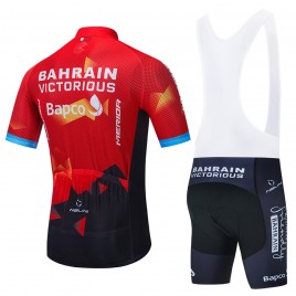 Tenue cycliste équipe pro BAHRAIN Victorious 2021 à prix exceptionnel comprend 1 cuissard vélo + 1 maillot cyclisme Aero Mesh à manches courtes. Maillot cycliste : Entièrement en tissu Aero Mesh respirant technologie COOLMAX® microfibres 100% polyester, très haut de gamme, qui assurent une bonne régulation de la température et une évacuation optimale de la transpiration vers l'extérieur. Extrêmement léger, séchage rapide, ultra respirant et très élastique. Protection AntiUV 40+ Ouverture avant par zip intégral dissimulé, 3 Poches à l'arrière. Bande siliconée en bas de maillot pour un meilleur maintien. Coupe très confortable. Couleurs inaltérables. Entretien ultra-simple. Cuissard vélo : Coupe épousant parfaitement votre morphologie. Matière légère, extensible et respirante avec la technologie Lycra Sport® (80% Polyester et 20% Lycra). Coutures plates offrant un grand confort. Peau de chamois haut de gamme pour un confort maximal : insert du cuissard en gel 3D pour absorber les chocs et vibrations du sol, technologie respirante COOLMAX® pour évacuer la transpiration et traitement antibactérien. Entretien facile. Choisir votre taille : Il est possible d'avoir un maillot cyclisme et un cuissard vélo de 2 tailles différentes (par exemple maillot taille M et cuissard taille L), pour cela il suffit de commander avec la taille du cuissard puis de nous envoyer un message pour nous indiquer la taille du maillot.Vous pouvez également demander un cuissard sans bretelles : il suffit de le mentionner dans votre message lors de la commande, et nous adapterons votre tenue sans frais supplémentaires.