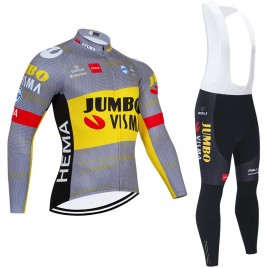 Cette tenue cycliste hiver pro JUMBO VISMA édition limitée TOUR DE FRANCE 2021 à prix exceptionnel comprend 1 cuissard vélo + 1 maillot cyclisme à manches longues. Maillot cycliste : Tissus hiver microfibres 100% polyester polaire thermique, très haut de gamme, qui assurent une bonne régulation de la température et une évacuation optimale de la transpiration vers l'extérieur. Séchage rapide, respirant et très élastique. Protection AntiUV 40+ Ouverture avant par zip intégral dissimulé, 3 Poches à l'arrière. Bande siliconée en bas de maillot pour un meilleur maintien. Coupe très confortable. Couleurs inaltérables. Entretien ultra-simple. Cuissard vélo : Coupe épousant parfaitement votre morphologie. Matière légère, extensible et respirante avec la technologie Lycra Sport® (80% Polyester polaire thermique et 20% Lycra). Peau de chamois haut de gamme pour un confort maximal : insert du cuissard en gel 3D pour absorber les chocs et vibrations du sol, technologie respirante COOLMAX® pour évacuer la transpiration et traitement antibactérien. Entretien facile. Choisir votre taille : Il est possible d'avoir un maillot cyclisme et un cuissard vélo de 2 tailles différentes (par exemple maillot taille M et cuissard taille L), pour cela il suffit de commander avec la taille du cuissard puis de nous envoyer un message pour nous indiquer la taille du maillot.Vous pouvez également demander un cuissard sans bretelles : il suffit de le mentionner dans votre message lors de la commande, et nous adapterons votre tenue sans frais supplémentaires.