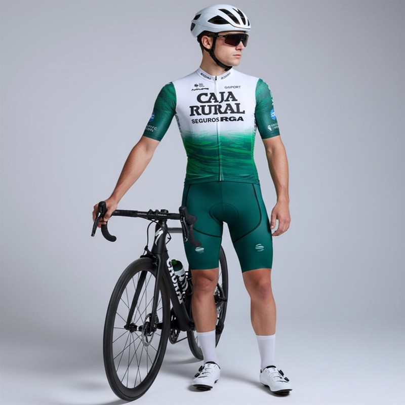 Tenue cycliste homme équipe pro CAJA RURAL Seguros RGA 2026 à prix exceptionnel comprend 1 cuissard vélo + 1 maillot cyclisme Aero Mesh à manches courtes.