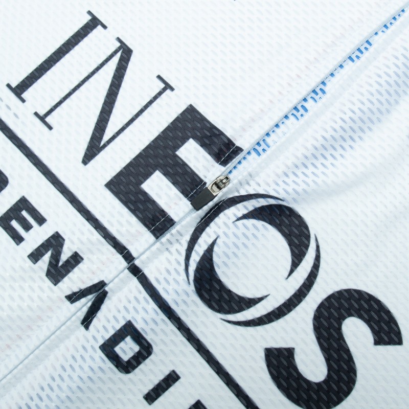 Tenue cycliste homme équipe pro INEOS Grenadier 2023 Aero Mesh White Edition à prix exceptionnel comprend 1 cuissard vélo + 1 maillot cyclisme Aero Mesh à manches courtes.