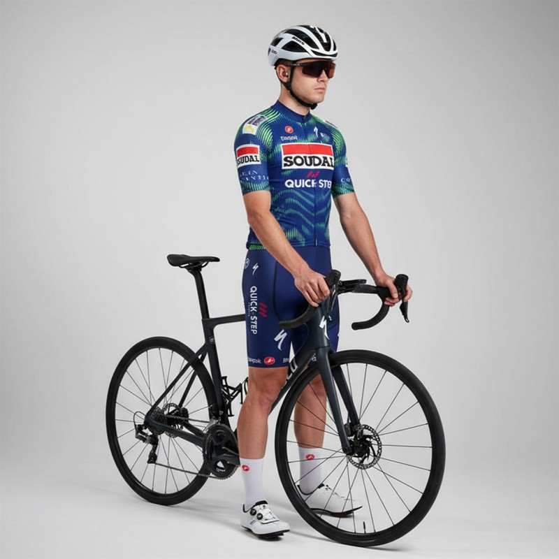 Tenue cycliste homme équipe pro SOUDAL QUICK-STEP 2026 à prix exceptionnel comprend 1 cuissard vélo + 1 maillot cyclisme Aero Mesh à manches courtes.