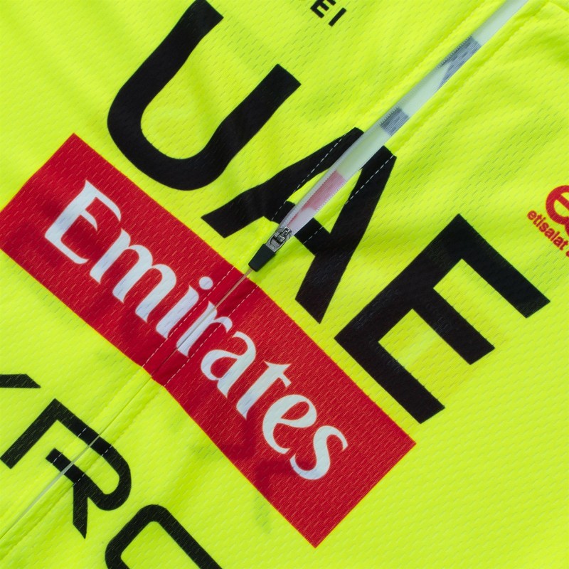 Tenue cycliste homme équipe pro UAE Team Emirates – XRG 2026 Fluo Edition à prix exceptionnel comprend 1 cuissard vélo + 1 maillot cyclisme Aero Mesh à manches courtes.