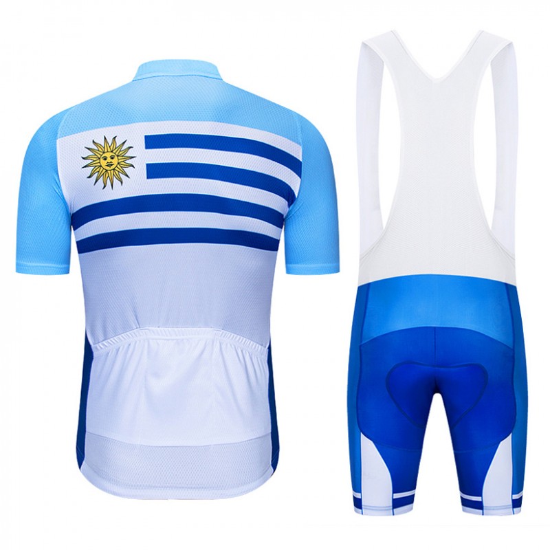 Cette tenue cycliste pro Uruguay 2019 à prix exceptionnel comprend 1 cuissard vélo + 1 maillot cyclisme à manches courtes.