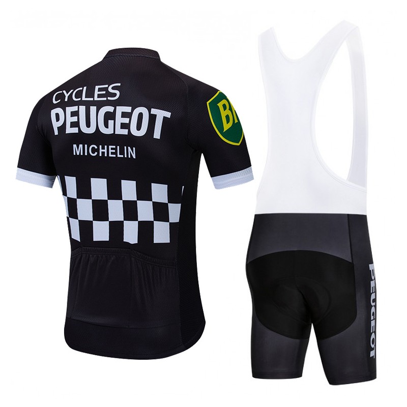 Cette tenue cycliste rétro vintage pro PEUGEOT BP Michelin black edition à prix exceptionnel comprend 1 cuissard vélo + 1 maillot cyclisme à manches courtes.
