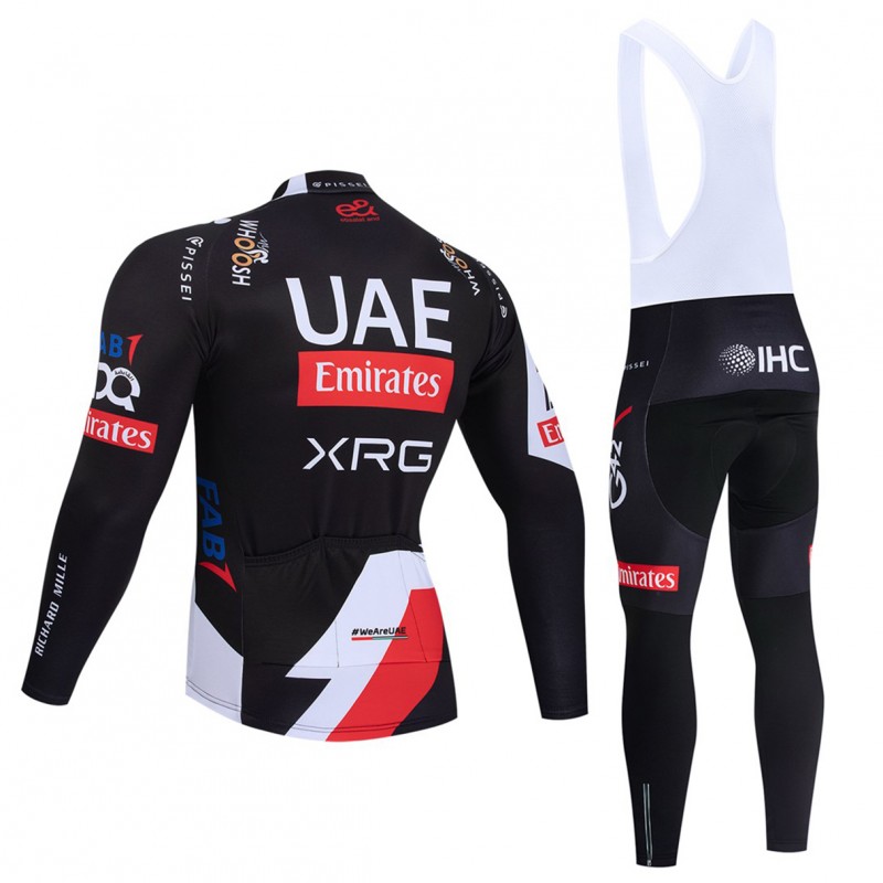 Cette tenue cycliste hiver équipe pro UAE Team Emirates – XRG 2026 Black Edition à prix exceptionnel comprend 1 cuissard vélo + 1 maillot cyclisme à manches longues.