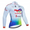 Cette tenue cycliste hiver pro SOUDAL QUICKSTEP 2023 à prix exceptionnel comprend 1 cuissard vélo + 1 maillot cyclisme à manches longues. Maillot cycliste : Tissus hiver microfibres 100% polyester polaire thermique, très haut de gamme, qui assurent une bonne régulation de la température et une évacuation optimale de la transpiration vers l'extérieur. Séchage rapide, respirant et très élastique. Protection AntiUV 40+ Ouverture avant par zip intégral dissimulé, 3 Poches à l'arrière. Bande siliconée en bas de maillot pour un meilleur maintien. Coupe très confortable. Couleurs inaltérables. Entretien ultra-simple. Cuissard vélo : Coupe épousant parfaitement votre morphologie. Matière légère, extensible et respirante avec la technologie Lycra Sport® (80% Polyester polaire thermique et 20% Lycra). Peau de chamois haut de gamme pour un confort maximal : insert du cuissard en gel 3D pour absorber les chocs et vibrations du sol, technologie respirante COOLMAX® pour évacuer la transpiration et traitement antibactérien. Entretien facile. Choisir votre taille : Il est possible d'avoir un maillot cyclisme et un cuissard vélo de 2 tailles différentes (par exemple maillot taille M et cuissard taille L), pour cela il suffit de commander avec la taille du cuissard puis de nous envoyer un message pour nous indiquer la taille du maillot.Vous pouvez également demander un cuissard sans bretelles : il suffit de le mentionner dans votre message lors de la commande, et nous adapterons votre tenue sans frais supplémentaires.